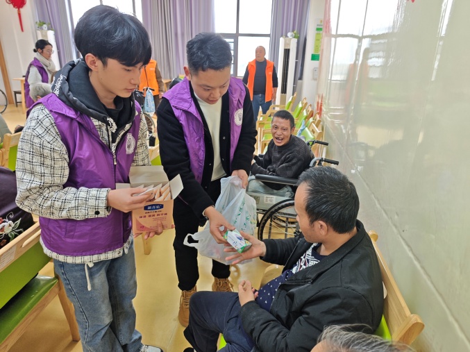 研究生第一党支部、本科生第一党支部联合会计学院研究生第二党支部,组织党员、发展对象及入党积极分子组成一支30人的志愿者队伍,走进花溪清溪街道养老服务中心,为26位老人送去自制鲜花等慰问品,亲切攀谈温暖关怀,进行了热闹的文艺表演和互动游戏,还印制了防诈反诈传单,结合真实案例普及防诈骗知识,送去暖心陪伴与真挚关怀。
