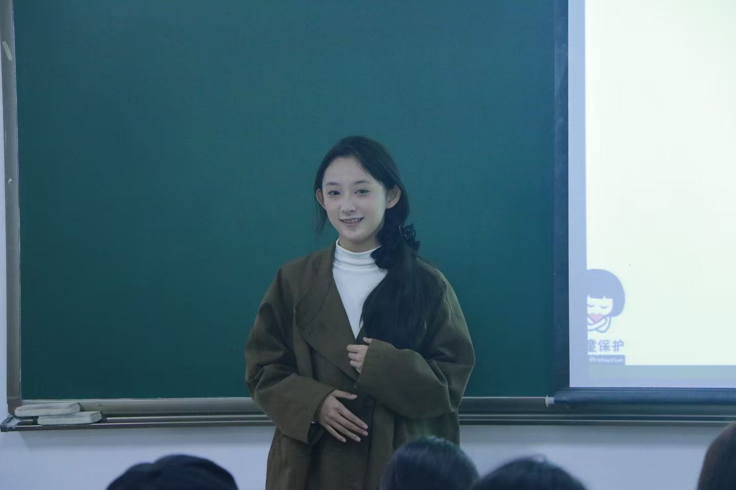 当讲师抛出问题时,台下的同学们都踊跃举手,积极互动,讲师和同学们构成了一幅和谐的画卷。录制完成后,工作人员观看了一遍又一遍录制的视频,不断思考,不断筛选出最完美的一段视频。同学们表示,如果能尽自己的微薄之力将女童保护的知识经过网络平台不断扩展出去,扩大女童保护的影响力,不管录制多久都愿意坚持下去。